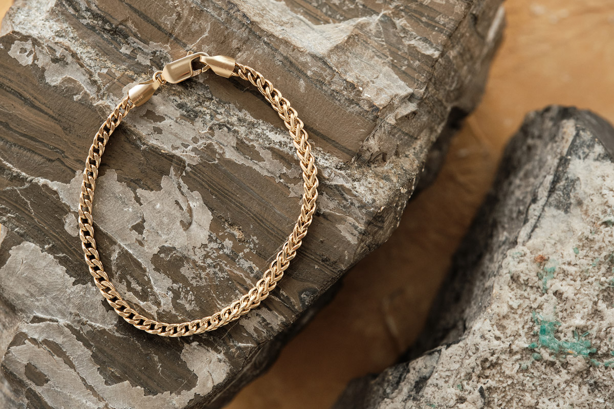 Brazalete oro amarillo 18k tejido espiga.